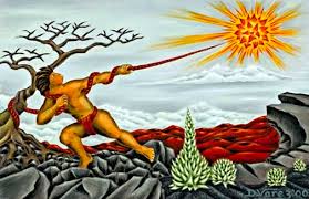 In ancient times the sun traveled much faster across the sky than it does today.The days were very short with hardly enough time for people to hunt or fish and they could not do their gardens .Many people complained that not long ago they had got up had breakfast and prepared their tools for work before the sun slowly disappeared into the night sky.Maui decided that him and his brothers would put a rope around the sun with help from his brothers to make the sun travel much more slower.That way every one would have time to do their things.